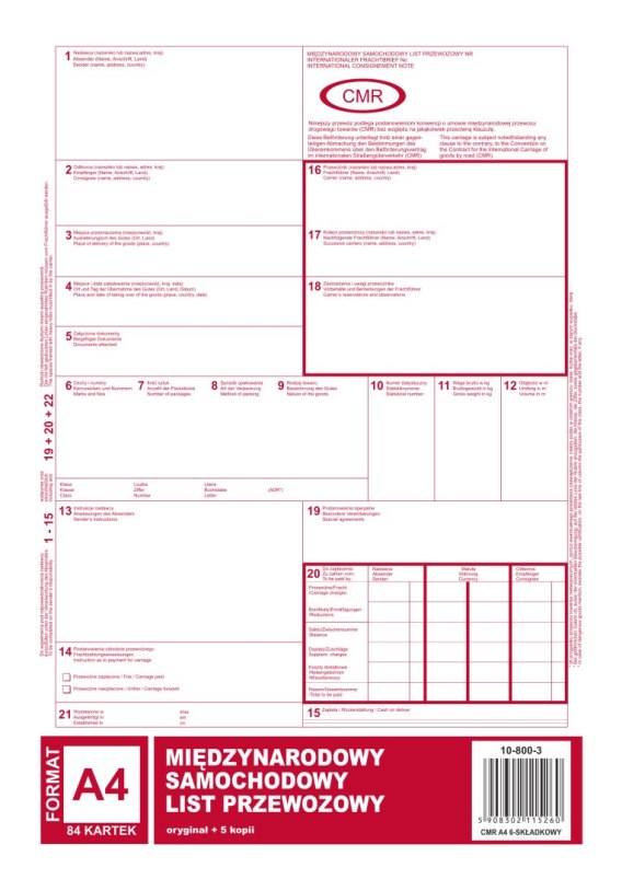 800-3 CMR A4 78kartek 1+5 międzynarodowy list przewozowy MICHALCZYK