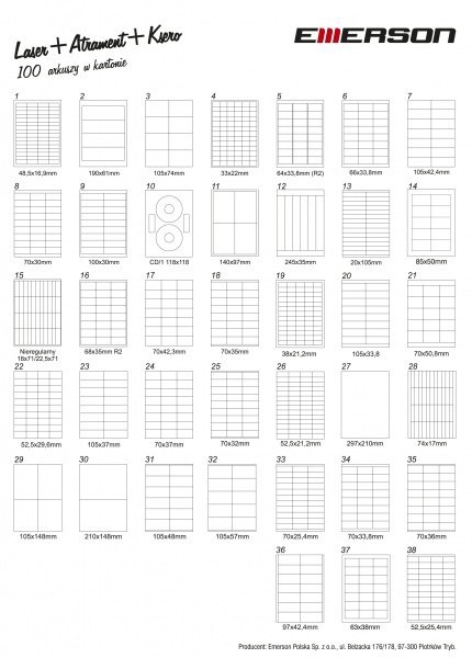 | Nazwa B2B | Etykieta samoprzylepna EMERSON A4 70*30 biała 100szt nr008 |