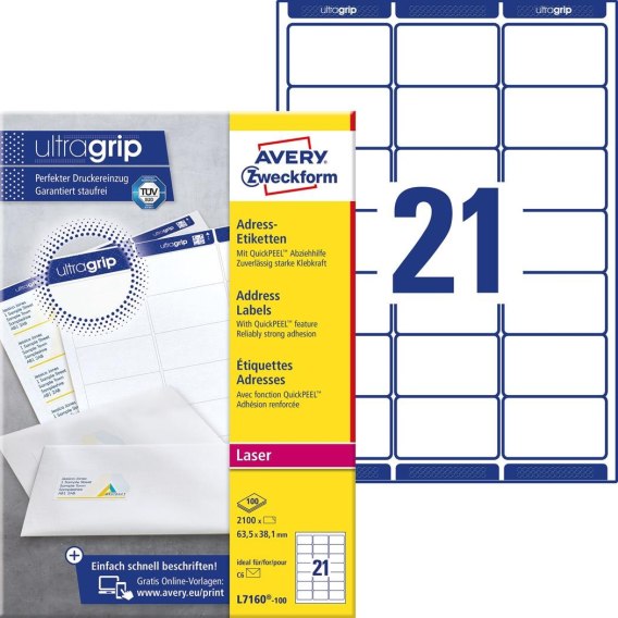 Etykiety adresowe L7160-100 63,5 x 38,1 100 ark. białe Avery Zweckform