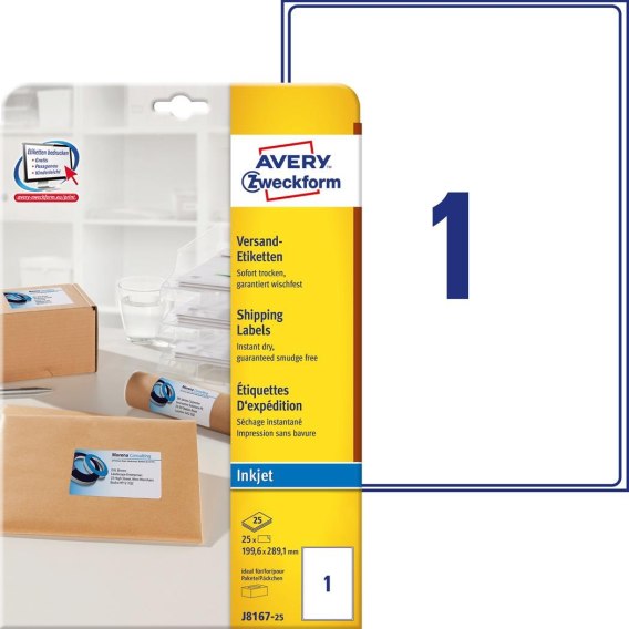 Etykiety wysyłkowe J8167-25 199,6 x 289,1 25ark. białe Avery Zweckform (X)