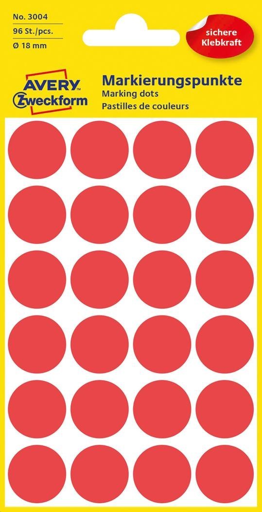 | Nazwa B2B | Trwałe kółka do zaznaczania _18mm, 96szt./op. czerwone 3004 Avery Zweckform |