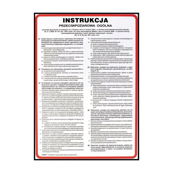 Naklejka INSTRUKCJA POSTĘPOWANIA NA WYPADEK POŻARU Z-IP1-P