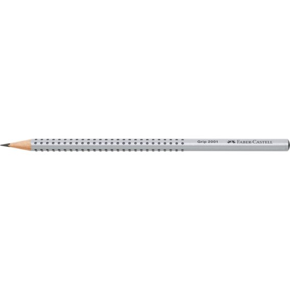Ołówek grafitowy Grip 2001 Faber-Castell w kolorze srebrnym. Nawet w czasach zdominowanych przez komputery, telefony i internet, ołówek wciąż pozostaje nieodłącznym towarzyszem codzienności. To doskonałe w swojej prostocie narzędzie. Ergonomiczny trójkątny kształt i charakterystyczna dla tej serii opatentowana strefa Grip z małymi, antypoślizgowymi punktami zapewniają wysoki komfort użytkowania i niemęczące, wygodne pisanie i szkicowanie. Odpowiedni również dla leworęcznych. Z odpornym na pękanie grafitem o stopniu twardości B, dzięki bezpiecznemu procesowi wiązania (SV). Wykonany z certyfikowanego drewna pochodzącego ze zrównoważonego i odpowiedzialnie zarządzanego leśnictwa. Powierzchnia pokryta lakierem na bazie wody _ bezpiecznym dla środowiska i zdrowia dzieci. Produkcja neutralna pod względem emisji dwutlenku węgla.