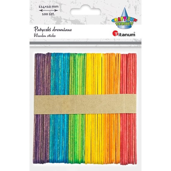Patyczki drewniane mix kolorów (100) 11,4cm 361574 TITANUM 50 kolorowych + 50 naturalnych
