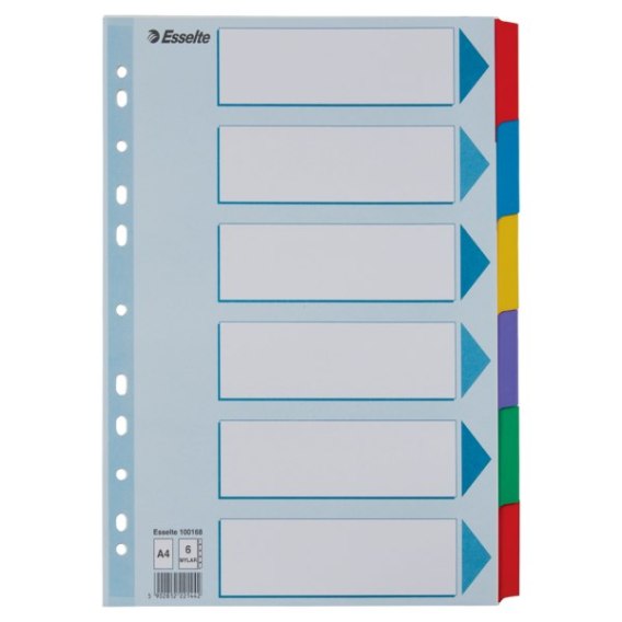 Przekładki, kolorowy karton, karta opisowa Mylar A4, Esselte, 6 kart, , 100168 (X)
