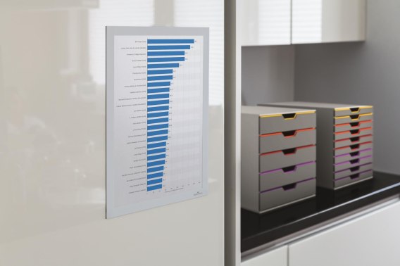 Durable MAGAFRAME_- samoprzylepna magnetyczna ramka z uchylną przednią stroną - wyjątkowe nowoczesne wzornictwo - w zestawie znajduje się specjalna półprzezroczysta folia, na której wykonywany jest wydruk- tak przygotowaną informację umieszcza się pomiędzy dwie akrylowe płytki i zaciska metalowymi nakrętkami - Całość tworzy bardzo ciekawe przestrzenne formy _- jednostka sprzedaży 1kpl.