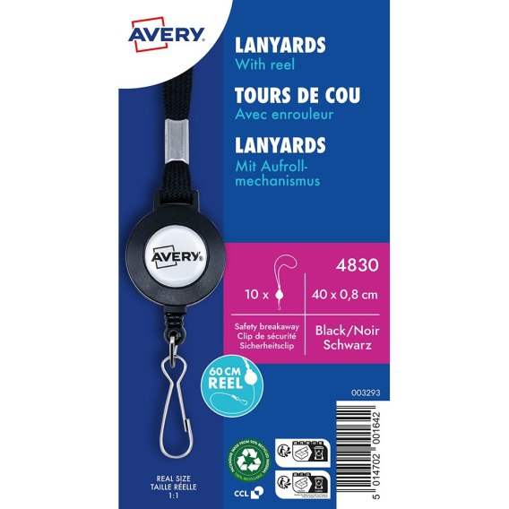• Smycze posiadają zapięcie bezpieczeństwa i obrotowy karabińczyk do zaczepienia kart identyfikacyjnych lub uchwytów na identyfikatory.
