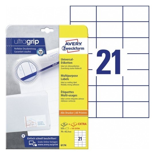 | Katalog_2021naz | Trwałe etykiety uniwersalne 6174 70x42,3 30 ark. białe Avery Zweckform |