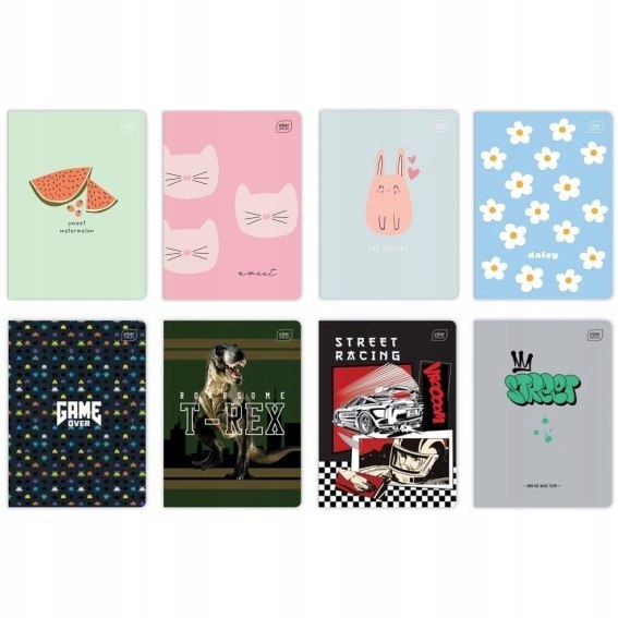 Zeszyt__okładka pokryta lakierem UV__zaokrąglone rogi (format A5)__bogata kolorystyka i duża_różnorodność wzorów okładek__jednostka sprzedaży 1 sztuka