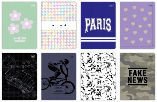 Zeszyt__okładka pokryta lakierem UV__zaokrąglone rogi (format A5)__bogata kolorystyka i duża_różnorodność wzorów okładek__jednostka sprzedaży 1 sztuka