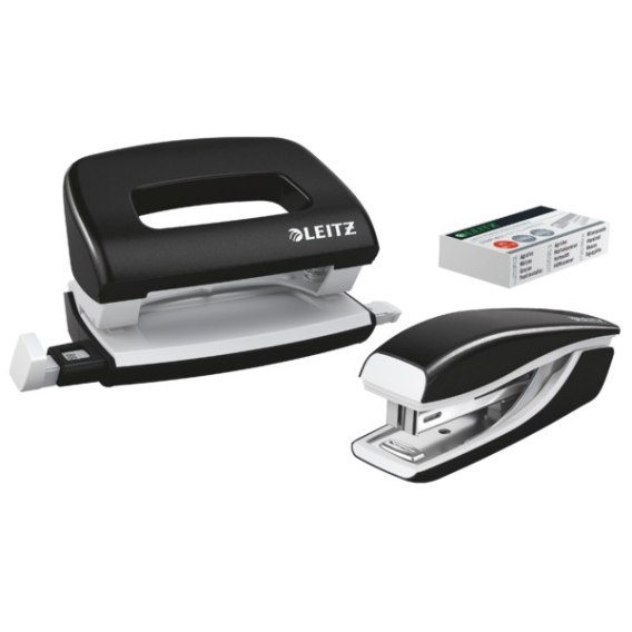 | Katalog_2020naz | Zszywacz + dziurkacz metalowy Leitz Mini WOW, czarny, 10 lat gwarancji, 10 kartek 55612095 |