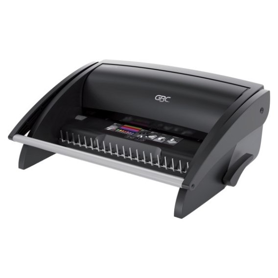 Bindownica CombBind C110 idealnie sprawdza się w biurze z umiarkowanymi wymaganiami_dziurkuje do 12 kartek (80 g/m2) oraz binduje do 195 kartek A4 przy użyciu 21 mm grzbietów_lekka i przenośna konstrukcja, łatwa do przechowywania, gdy nie jest używana_system Quickstep upraszcza proces bindowania oraz usuwa najczęstsze powody frustracji przy bindowaniu - korzystając z oznaczeń kolorystycznych Quickstep na bindownicy i grzebieniach GBC ProCombs, użytkownik prowadzony jest krok po kroku przez proces bindowania aby szybko i bezproblemowo oprawić dokumenty_gwarancja: 2 lata_kolor: czarny