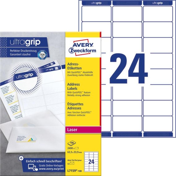 Etykiety adresowe L7159-100 63,5 x 33,9 100 ark. Avery Zweckform