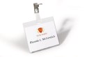 Z przezroczystej twardej folii. Z obrotowym klipem umżliwiającym poziome zaczepienie. Z etykietką. Mocowanie klipa zamyka jednoczeńie kieszeń identyfikatora. Poziomy 60 x 90 mm