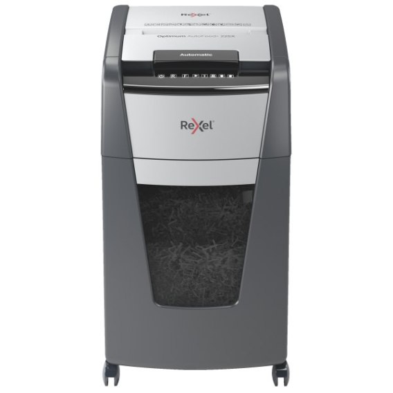 Niszczarka automatyczna do papieru Optimum AutoFeed+ 225X jednorazowo niszczy automatycznie do 225 kartek A4 (80 gsm), tnąc arkusze na konfetti (o wymiarach 4 x 26 mm), co zapewnia poziom bezpieczeństwa P-4. Wyposażona jest w automatyczny podajnik i 60-litrowy pojemnik na ścinki, co sprawia, że idealnie nadaje się do użytku biurowego. Nie wymaga ręcznego podawania papieru ani wcześniejszego usuwania zszywek i spinaczy - ta automatyczna niszczarka całą pracę wykona za Ciebie.