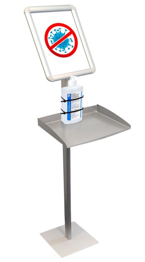 Stojak do dezynfekcji SIS1500/80 z tabliczką informacyjną haczyki na zrywki PÓŁKA OBNIŻONA