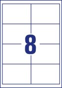 Technologia druku:•INK JET: Tak•LASER: Tak•LASER COLOR: Tak•KSERO: TakCechy produktu:•Rozmiar etykiety (mm): 97 x 67,7•Etykiet / arkusz: 8•Arkuszy/ opakowanie: 100•Etykiet/ opakowanie: 800•Kolor: białe•Format: A4•Rzędów/ arkusz: 2x4•Certyfikaty: FSC