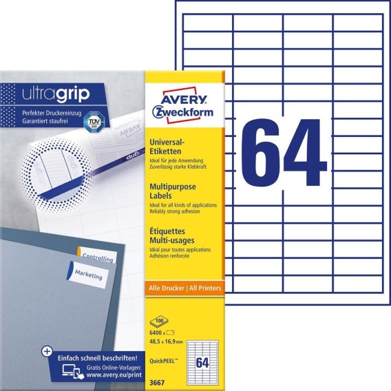 Trwałe etykiety uniwersalne 3667 48,5x16,9 100ar Avery Zweckform